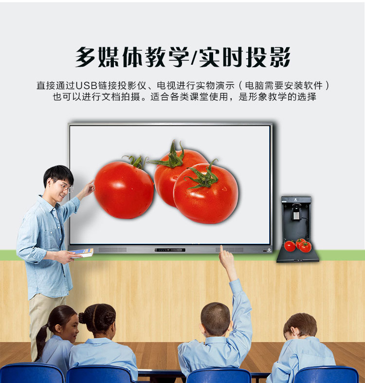 壁掛設(shè)計,采用高清攝像頭,1300萬像素,自帶OCR閱卷功能,支持批注、縮放、旋轉(zhuǎn)、保存分享、拍照等操作,有效提升課堂效率。