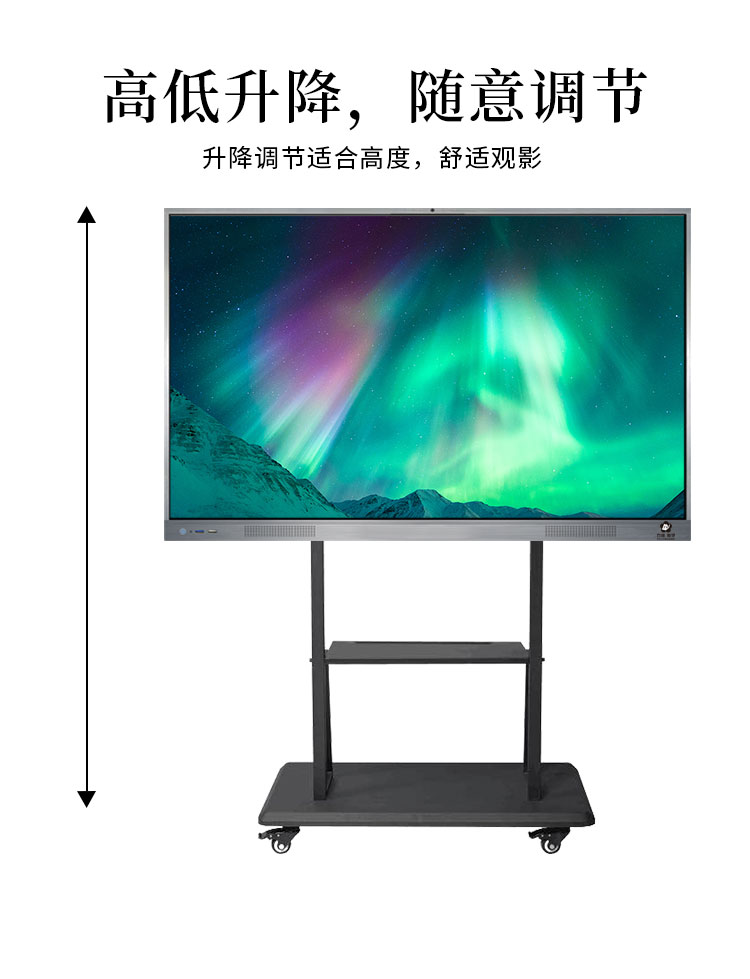黑色教學會議移動支架專用液晶電視、廣告機、觸控一體機、電子白板、教學會議等,高低升降,隨意調節。