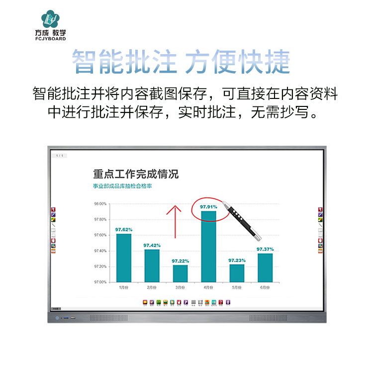 會議平板一體機-超窄邊框三等邊超窄邊框設計,推拉門鎖保護,4K超高清顯示,以人機交互的方式,搭載互動白板和無線投屏軟件,實現多人書寫、互聯互通的互動教學模式,豐富課堂內容,提高學習氛圍。
